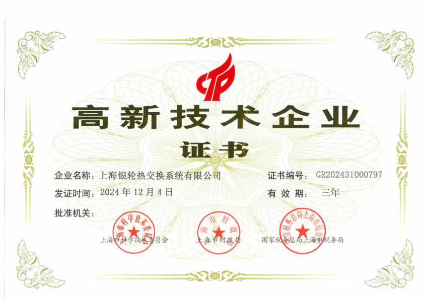 近日,上海銀輪熱交換系統(tǒng)有限公司(以下簡稱“上海銀輪”)榮獲高新技術(shù)企業(yè)證書。這一重要認(rèn)證標(biāo)志著上海銀輪在技術(shù)創(chuàng)新、研發(fā)能力以及自主知識(shí)產(chǎn)權(quán)等方面的突出表現(xiàn),為公司未來的發(fā)展提供了新的動(dòng)力,也為行業(yè)樹立了技術(shù)領(lǐng)先的標(biāo)桿。